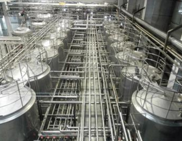 酸罐、堿罐、多個(gè)水罐以及泵和閥組等組成的清洗系統(tǒng)